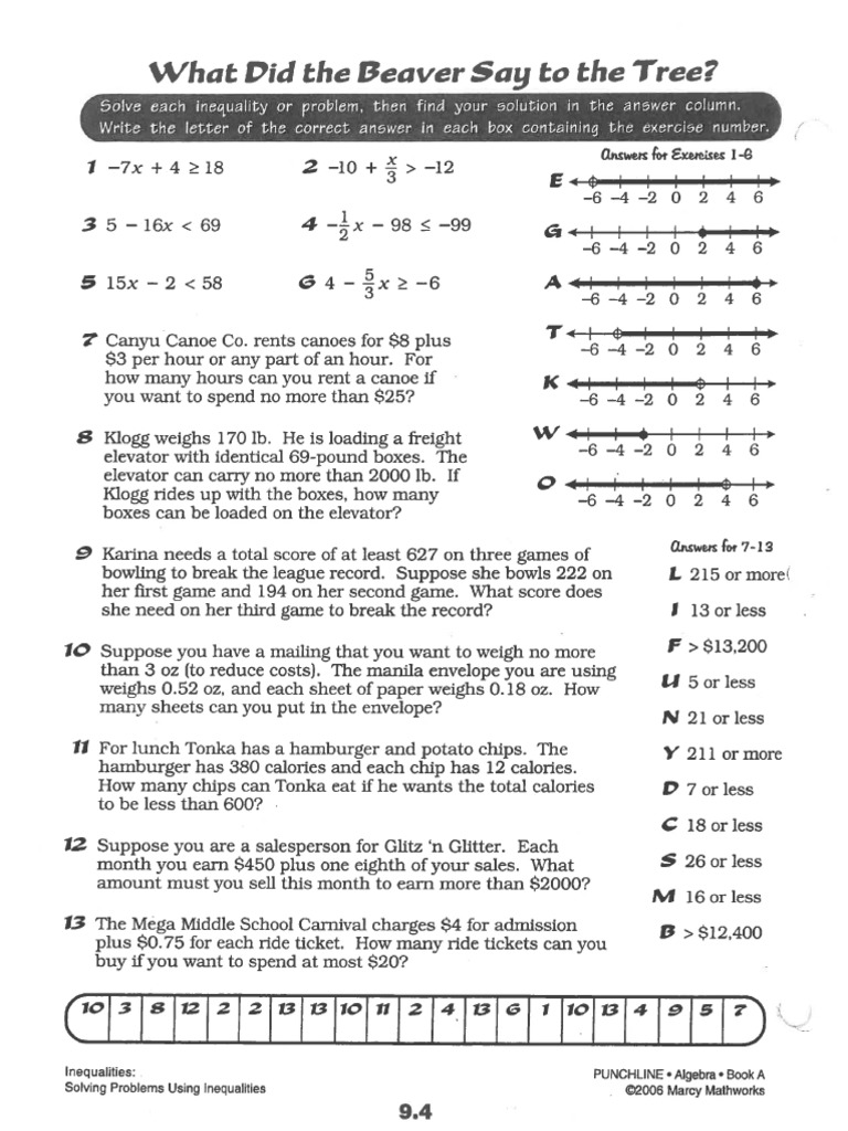 What is the answers to 94 PUNCHLINE algebra book what did the beaver say the the tree. Students then use their shading to help answer the two riddles. It Is Gee space I M space A space TREE.